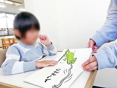 また発語を願って絵本の読み聞かせや、口や舌の動きを見せながら絵カードを使って発語の練習を繰り返していきました。