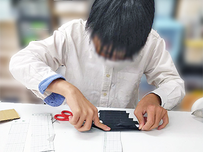 型紙は先生達で作りましたが、その通りに型を取り、線に沿って切る作業、テープを貼る作業は全てお友達が自分でやりました。