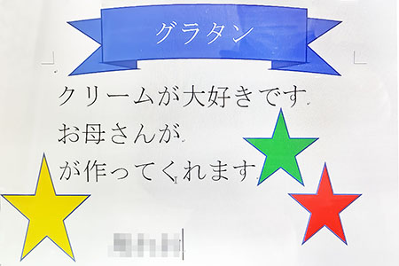 パソコンでの活動では、なかなか上手にキーボードの入力をこなし、文章を作り、自分の気持ちを表現できるようになってきました。