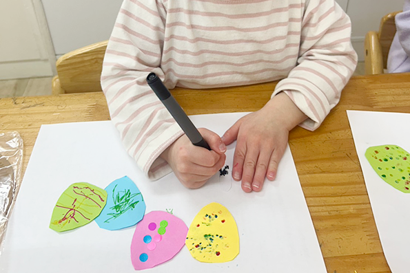 また、「できることをひとつずつ増やす」を目標に、プリントの線描きや工作、名前のなぞり書きなども支援に取り入れました。筆圧が弱く線がうまく書けなかった場面では、指導員が手を添えて一緒に練習するなど、自信につながる関わりを続けました。