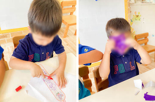 今では、静かに遊んでいる時にも先生が声をかけると、少し間を置いてから言葉で答えようとする様子が見られます。