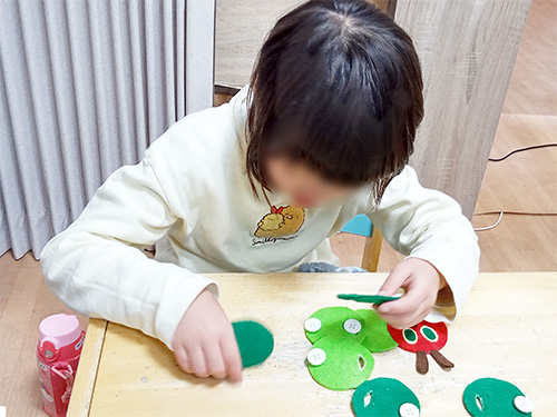 また、癇癪が起こった際は、別室でのクールダウンを経て、気持ちを落ち着けてから再度活動に取り組むという流れを丁寧に積み重ね、少しずつ自制心を身につけていきました。
