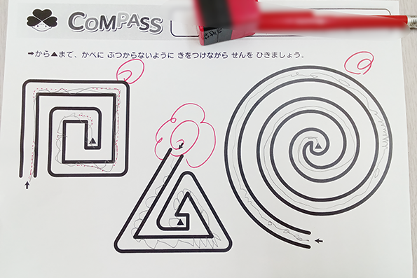 COMPASS Jrでは、口腔体操(鏡を見ながら口を動かす)、プリント学習(線描・ひらがな・かず)などを通して、発語の明瞭さや集中力を高める取り組みを行ってきました。