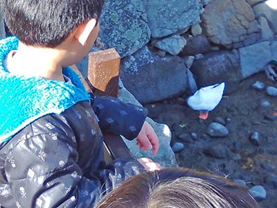 ガチョウさんを見つけてなんだか嬉しくなったお友達「ガチョウさーん」と呼んでみたりして楽しそう。