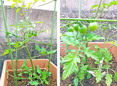 トマトの苗はあっという間に大きくなり、葉っぱからは覚えのあるあのトマトの匂いがします。