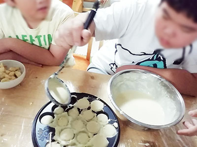 2回目、1回目を反省して生地の量と具の量を調整しました。