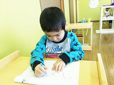 「お勉強するよ」と言われると、好きな遊びを途中で止め、素直に着座するお友達。